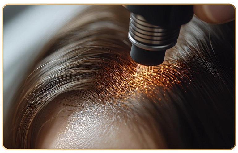 Protocolos não-cirúrgicos para estabilização da queda progressiva. Combinação de bioestimuladores, fatores de crescimento e terapias adjuvantes para fortalecimento folicular e melhora da qualidade capilar.